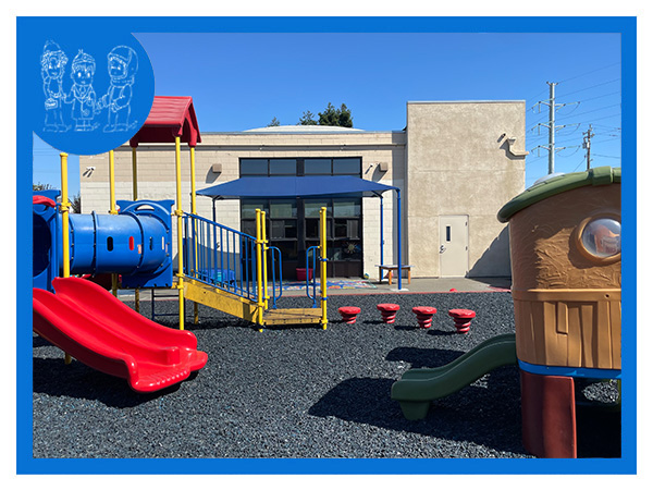 Our play yard is well equipped with climbing structures, tricycles, basketball hoops and plenty of shaded areas.